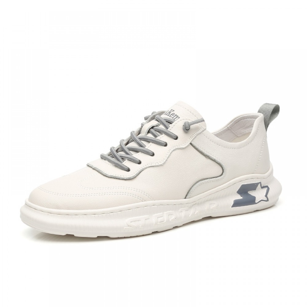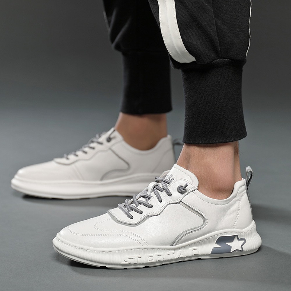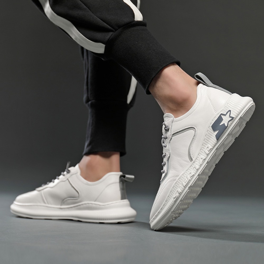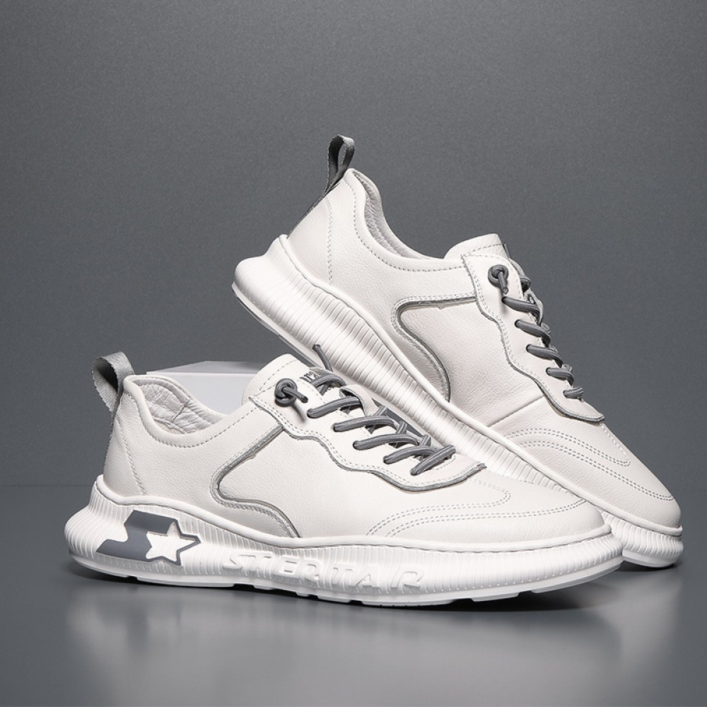 Autumn New Men's Leather Hot Style Casual Sports Shoes Low-Cut White Shoes