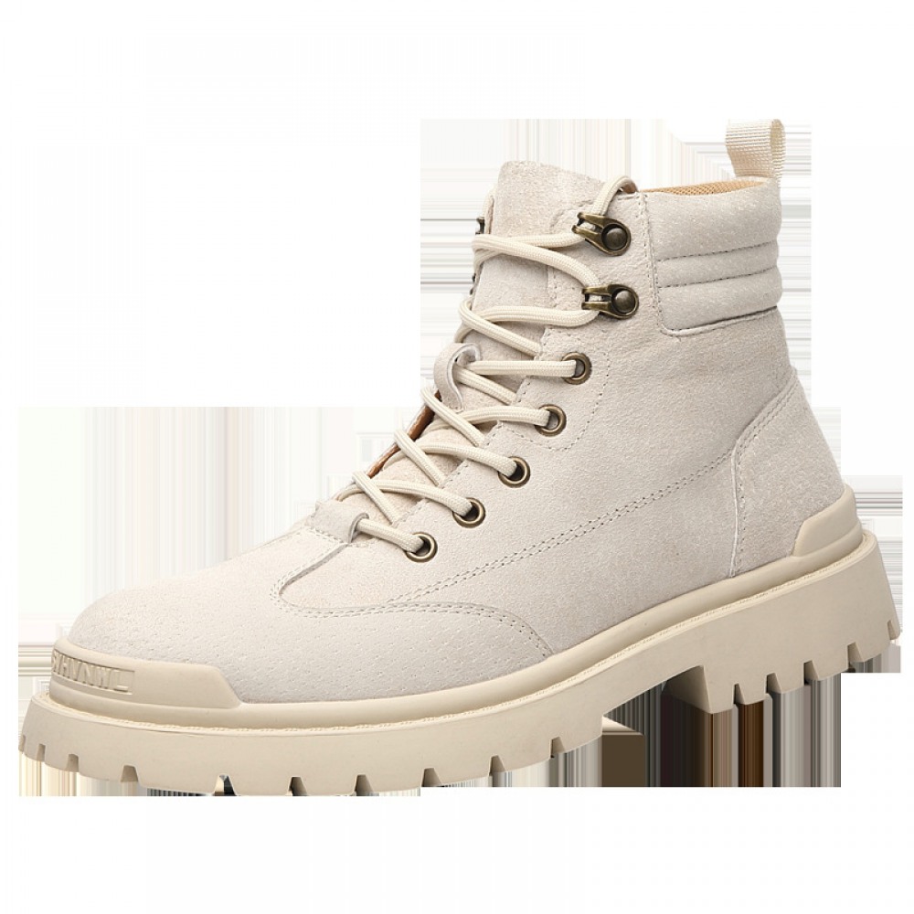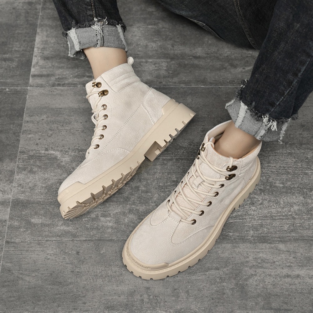 Autumn Men's New High-Top Leather Sneakers Casual Martin Boots Trendy White Shoes