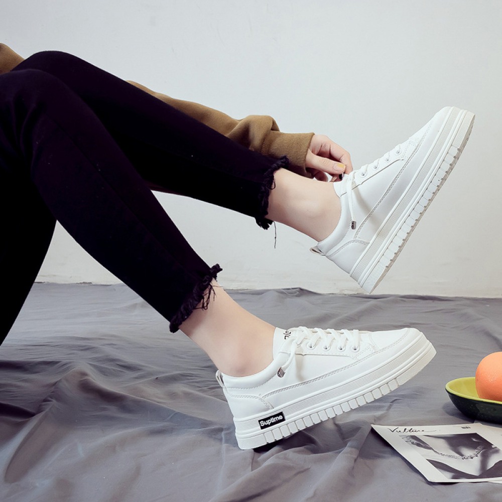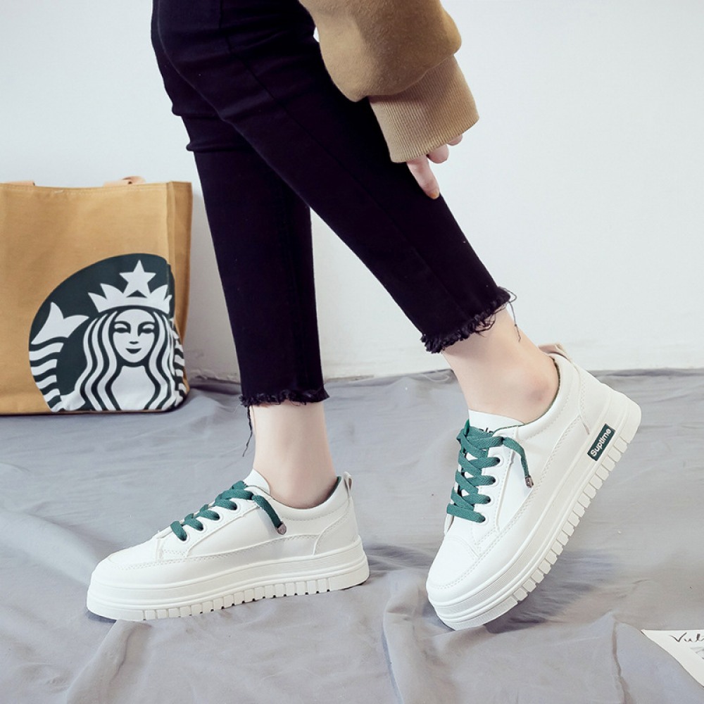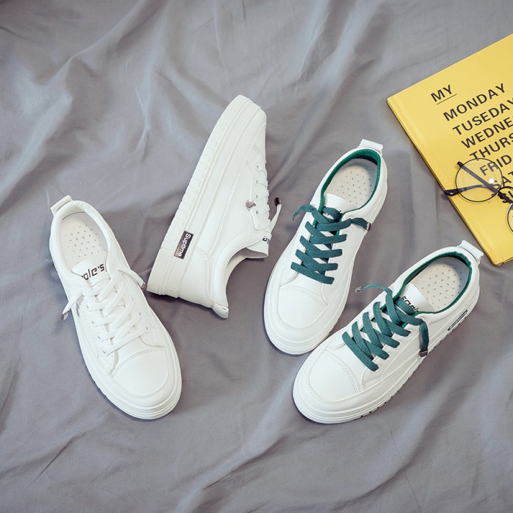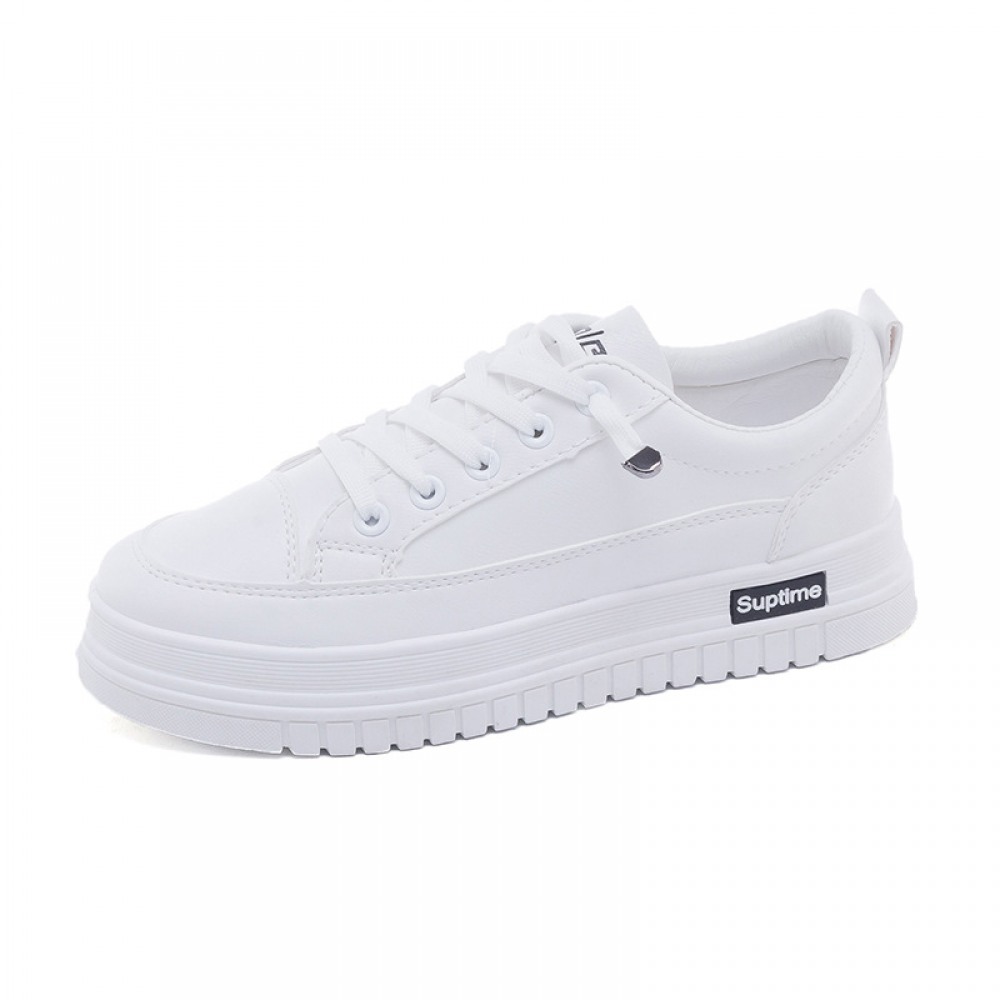 Basic White Shoes Spring New Student Flat Running Shoes Women's Lace-Up Platform Shoes