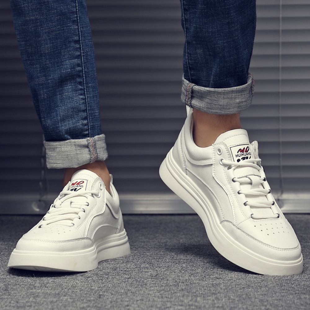 Autumn New Men's Leather Casual White Hot Style Trendy Lace Up Sports Shoes