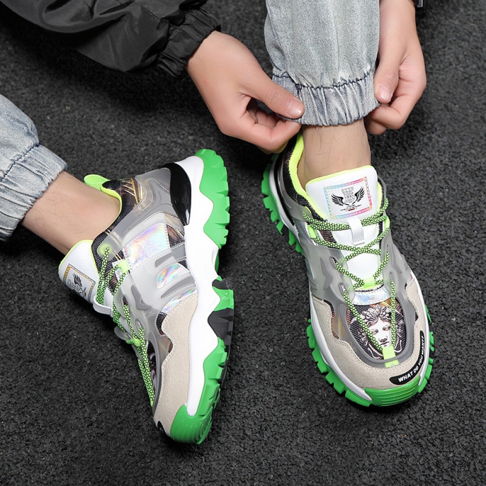 Mens Runing Shoes Walking Non Slip Blade Type Sneakers Fluorescent Green