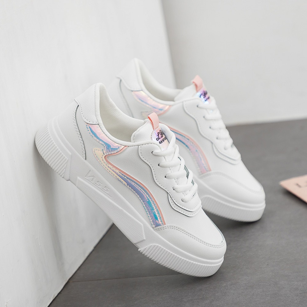 Spring And Summer New White Shoes Women Breathable Leather Thick-Soled Casual Sports Running Shoes
