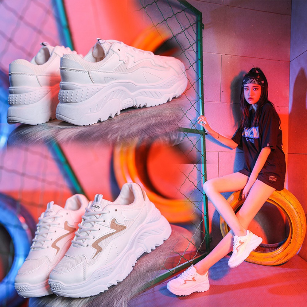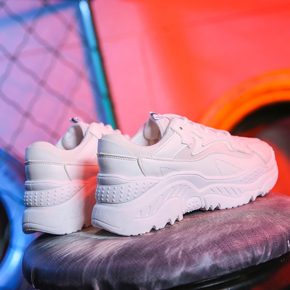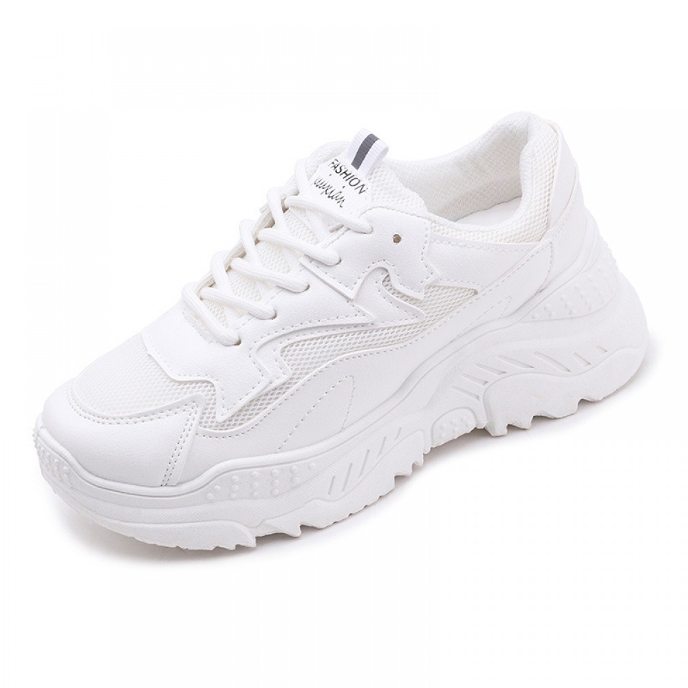 Spring And Summer New White Shoes Women Breathable Leather Thick-Soled Casual Sports Running Shoes