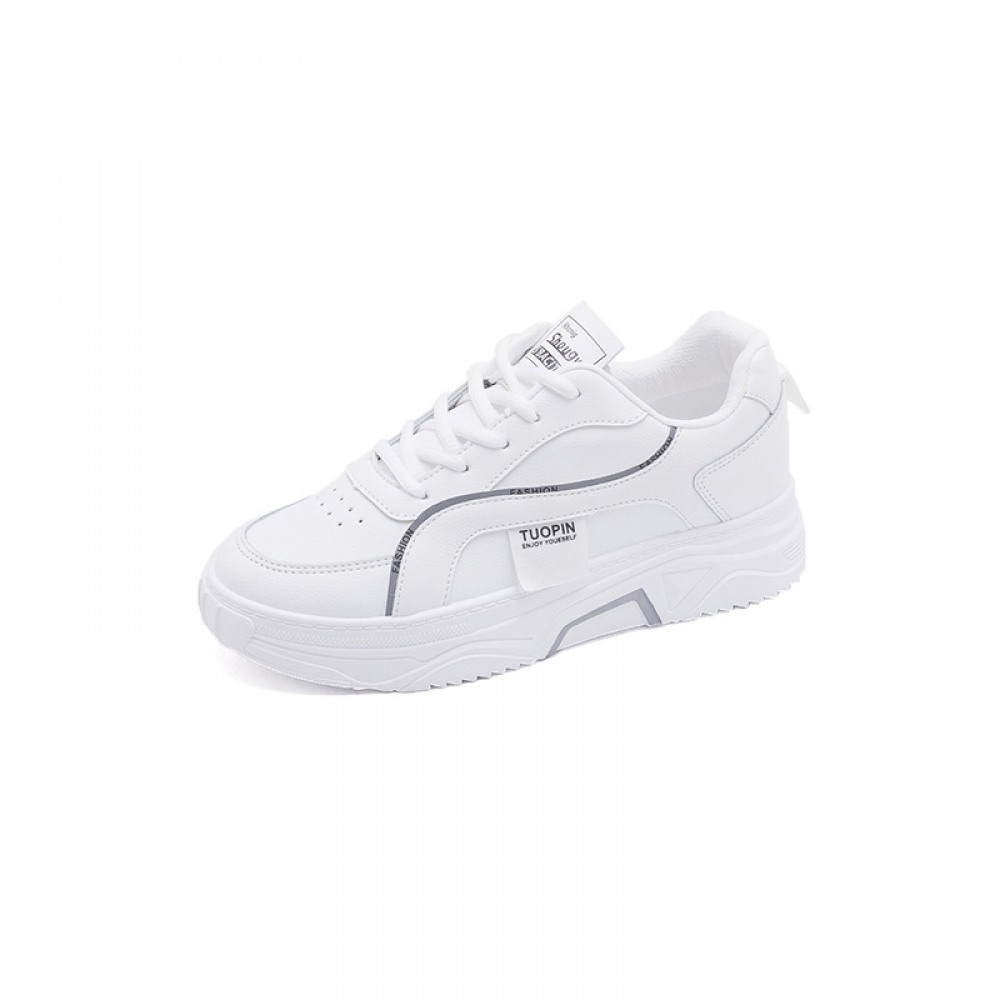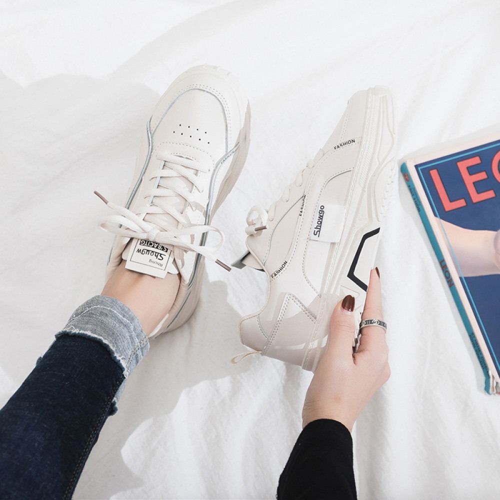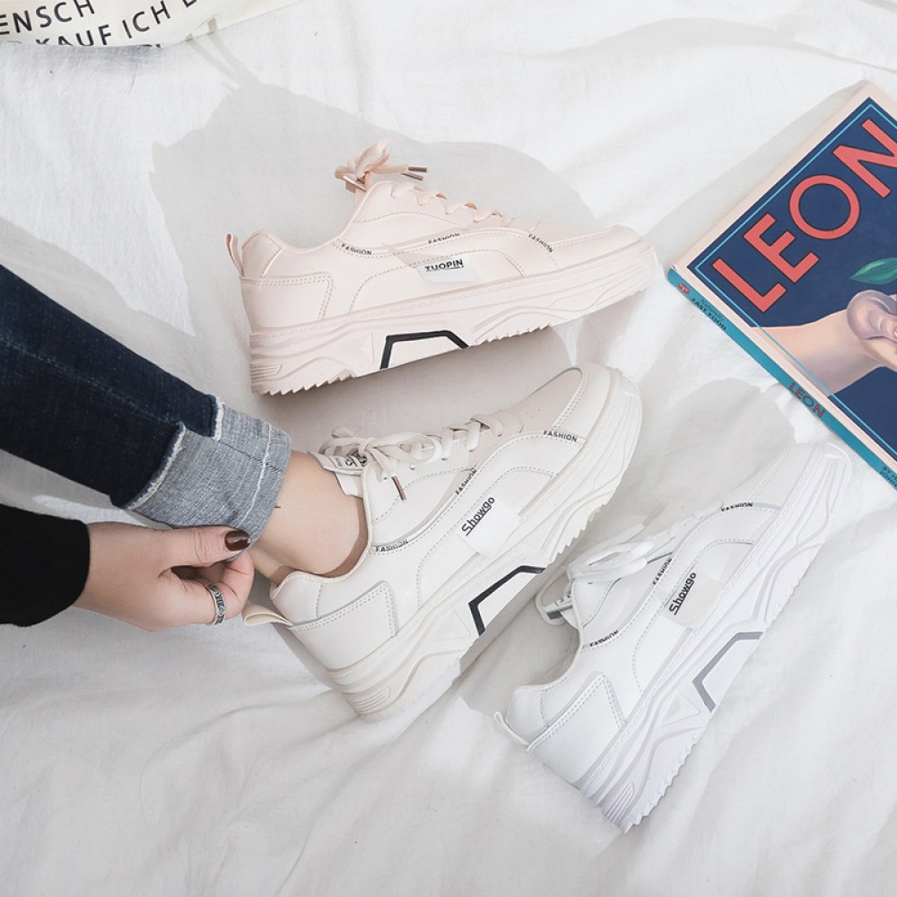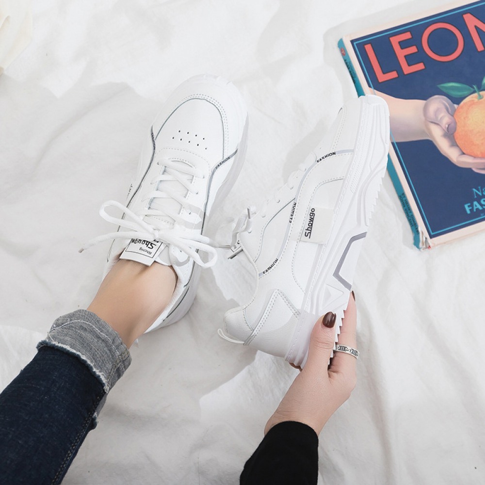 Spring And Summer New White Shoes Women Breathable Leather Thick-Soled Casual Sports Running Shoes